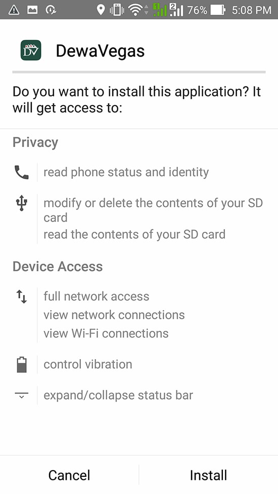 PANDUAN DOWNLOAD DAN INSTALL DEWAVEGAS VERSI ANDROID